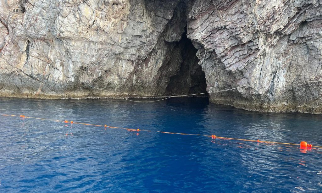 Era stata installata una catena per proteggere l’ingresso della cavità nella baia di Isolabella, ma il dispositivo è stato subito rotto.